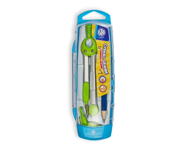 * zestaw zawiera: cyrkiel, ołówek, dodatkowe rysiki, uchwyt na ołówek