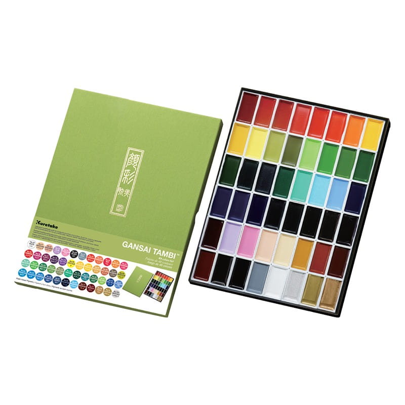 Farby akwarelowe w kostkach KURETAKE GANSAI TAMBI 48 kolory