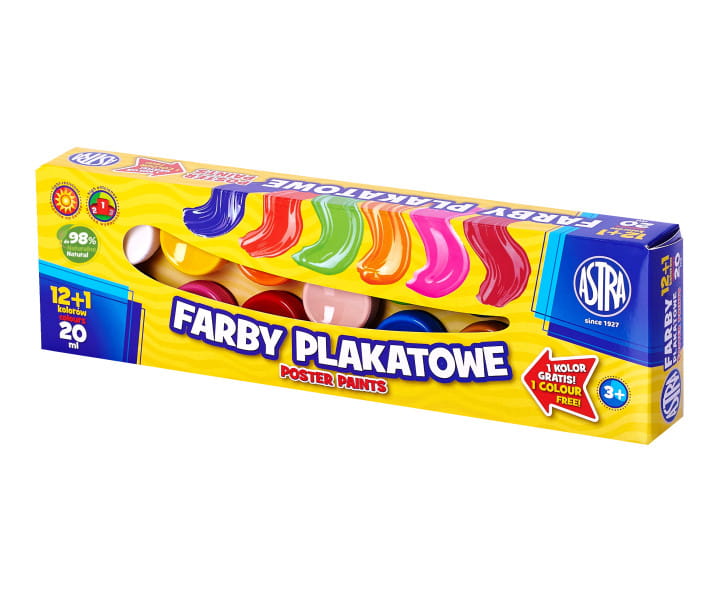 Farby plakatowe są farbami wodnymi, kryjącymi o czystych i intensywnych barwach. Ze względu na znakomitą przyczepność, nadają się do malowania na takich podłożach jak: papier, karton, drewno, ceramika, kamień. Wymalowane powierzchnie po wyschnięciu są matowe o intensywnych barwach, odporne na działanie światła i ścieranie. Wysoką jakość farb uzyskujemy dzięki wysokiej jakości pigmentom i spoiwom użytym do produkcji tych farb, oraz technologii produkcji.