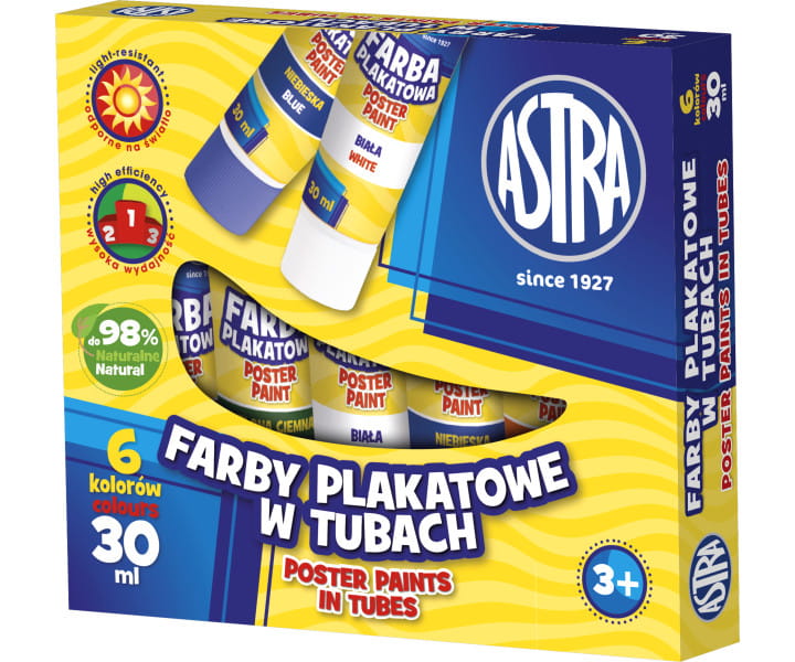 Farby plakatowe są farbami wodnymi, kryjącymi o czystych i intensywnych barwach. Ze względu na znakomitą przyczepność, nadają się do malowania na takich podłożach jak: papier, karton, drewno, ceramika, kamień. Wymalowane powierzchnie po wyschnięciu są matowe o intensywnych barwach, odporne na działanie światła i ścieranie. Wysoką jakość farb uzyskujemy dzięki wysokiej jakości pigmentom i spoiwom użytym do produkcji tych farb, oraz technologii produkcji.