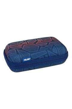 Usztywniany piórnik MILAN w twardej obudowie z 2 saszetkami z wyposażeniem z kolekcji FIT w kolorze niebieskim z czerwonym i niebieskim nadrukiem.