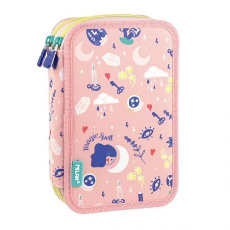 Piórnik z wyposarzeniem MILAN 2 poziomowy magic różowy