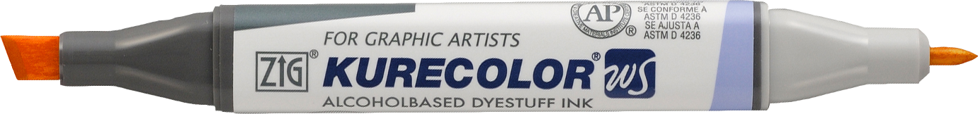 KURECOLOR Twin WS japońskiej firmy Kuretake to system profesjonalnych, dwukońcówkowych markerów w gamie135 kolorów (oraz blender). Zawierają transparentny, barwnikowy i permanentny tusz na bazie alkoholu, znakomity do łączenia kolorów i budowania przejść tonalnych. Jest możliwość ich wielokrotnego napełniania, dostępne są uzupełniające tusze (buteleczka wystarcza na ok. 5 napełnień). Marker posiada dwie końcówki: szeroką ściętą (6,5 mm) oraz precyzyjną okrągłą (1 mm). Są one wymienialne, dostępnych jest jeszcze kilka innych rodzajów końcówek. Markery Kurecolor Twin S to niezwykła jakość kolorowania - nie pozostawiają smug, więc nawet duże powierzchnie można pokryć jednolitą aplą pięknego koloru. Kolory są transparentne, nakładając jedną barwę na drugą, uzyskujemy nowy kolor. Odcień można zintensyfikować poprzez nakładanie jednej barwy kilkukrotnie. W podobny sposób można również tworzyć przejścia tonalne. Alternatywą jest użycie blendera: po zetknięciu jego końcówki z końcówką markera (blender trzymamy wyżej) bezbarwny tusz z blendera rozrzedza tusz pisaka - uzyskamy przejście od tonów jasnych do nasyconych. W odwrotnej konfiguracji (marker na górze) pewna ilość tuszu z pisaka zabarwi blender - uzyskamy łagodne rozmycie koloru. Kuretake Kurecolor Twin S to bardzo wydajne, doskonałej jakości markery, znakomite narzędzie do projektowania architektury, mody, wnętrz, rysowania mangi oraz komiksów.