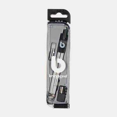 Cyrkiel z metalowymi ramionami, posiadający możliwość regulacji wysuwu igły oraz wymiennego grafitu. W zestawie znajdują się również dwa wkłady w zamykanym, plastikowym pudełku oraz temperówka.