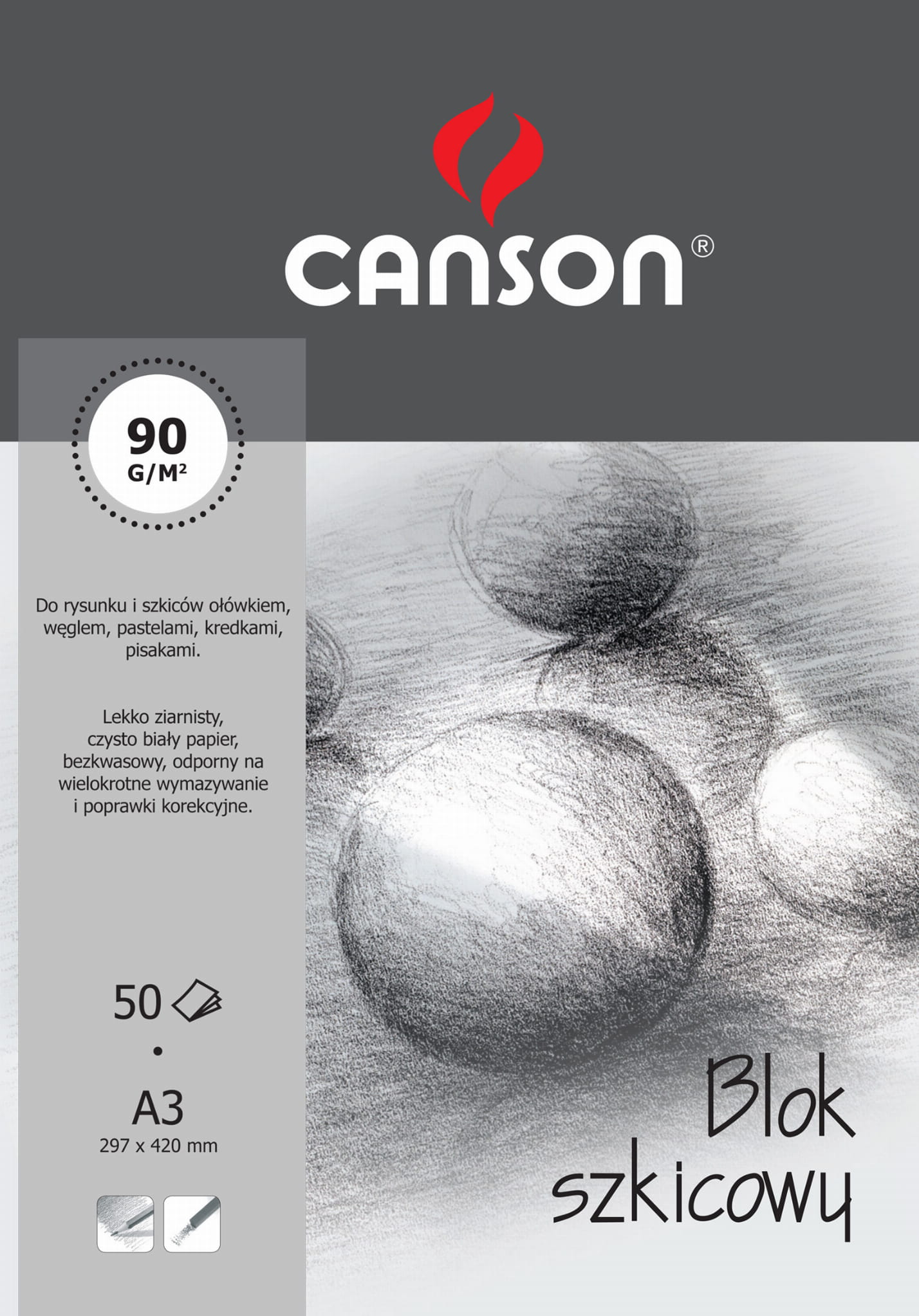 blok CANSON szkicownik A3 90g 50ark