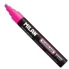 Markery do pisania i malowania po gładkich, nieporowatych powierzchniach (okna, lustra, tablice). Ścięta końcówka, grubość linii pisania: 2 mm i 4 mm. Wysokiej jakości tusz na bazie wody, który można łatwo usunąć suchą lub wilgotną szmatką. Fluorescencyjne kolory zachowują swoją intensywność dzięki wysokiej koncentracji pigmentów. Przed pierwszym użyciem mocno wstrząsnąć, kilkukrotnie wcisnąć końcówkę i odczekać kilkadziesiąt sekun aż pojawi się tusz. Wyprodukowane w Japonii. Rozmiar markera: 13,5 x Ø 1,7 cm.