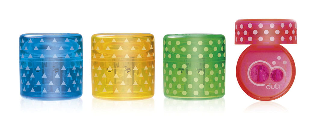 Temperówki na cienkie i grube ołówki i kredki z dużym pojemnikiem na ścinki. Mają ostre i wytrzymałe ostrza ze stali węglowej dzięki czemu idealnie nadają się do wszystkich rodzajów ołówków. Posiadają system bezpiecznych ostrzy, który zapobiega odłączeniu się ostrza od korpusu temperówki. Idealne do użytku szkolnego. Dostępne w 4 kolorach: żółtym, niebieskim, różowym i zielony. Oryginalny produkt stworzony przez własny dział badawczo-rozwojowy MILAN. Rozmiar temperówki: 4 x Ø 3,8 cm.